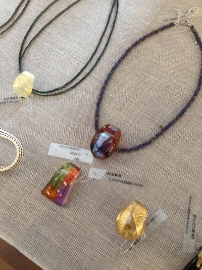 新しいアクセサリーが入荷しました。 9月にある展示会で見つけた硝子のアクセサリー。一目惚れして先日工房を訪ねてきました。工房の名前は野口硝子さん。