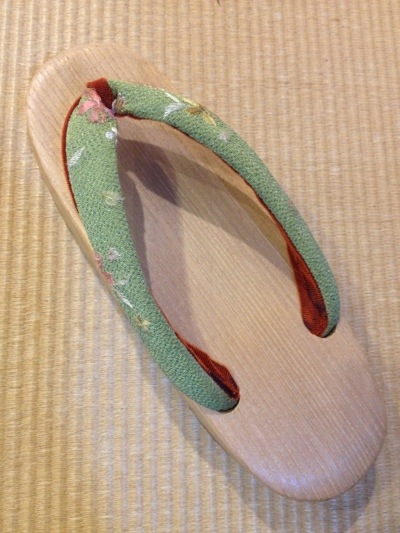 台は女性用ですが、少し粋な男性用の鼻緒に替えました。