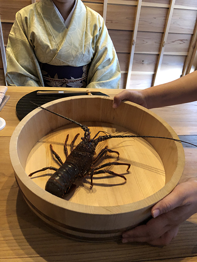 そしてお部屋に入って間もなく生きた伊勢海老が運ばれてきました。さすがは伊勢市のお店だけあって新鮮な伊勢海老を頂くことができます。