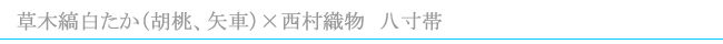 黒地に茶系の縞が印象的な草木縞白たかに西村織物さんの八寸帯を合わせてみました。