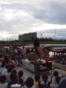 鵜飼の船に乗船する前に鵜匠さんの説明を聞くことができます。